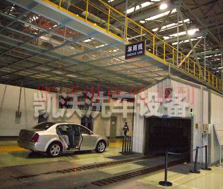 汽車天窗淋雨試驗線系統主要有噴淋系統、控制室、控制臺、過濾池、清水池,以及噴淋系統、污水處理系統、自動補水系統、安全保護裝置等組成。噴淋系統:由負壓貯水罐、水泵、閘閥、電磁閥、主管路、分支管路、可調角度的不銹鋼噴嘴等組成。