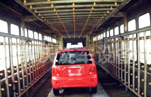 汽車淋雨線是車身密封檢測的重要裝置,主要由輸送板鏈、淋雨室、噴淋系統、吹干系統及控制系統組成。