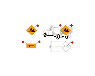 移動性施工標志用于警告前方道路有作業(yè)車正在施工,車輛駕駛?cè)藨?yīng)減速或變換車道行駛。