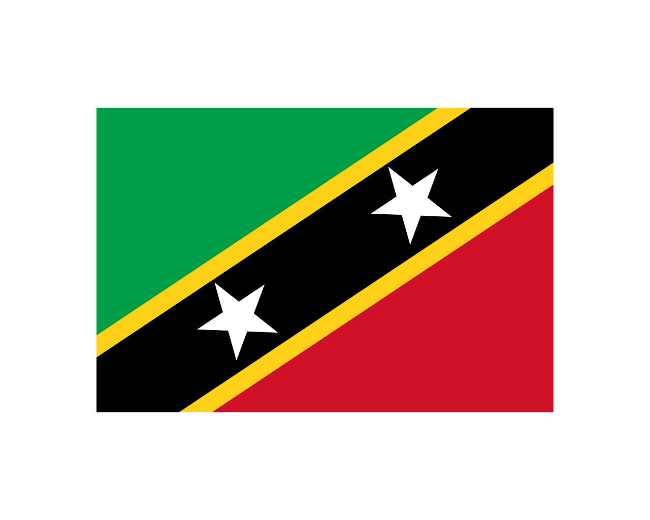 圣基茨和尼維斯聯(lián)邦(The Federation of Saint Kitts and Nevis),簡稱“圣基茨和尼維斯”,位于東加勒比海背風群島北部,是一個由圣克里斯多福島(圣基茨島)與尼維斯島所組成的島國。于1983年9月19日獨立,現(xiàn)為英聯(lián)邦成員國之一,首都巴斯特爾。圣基茨和尼維斯國旗啟用于1983年9月19日,國旗呈長方形,長寬之比為3:2。旗面左上角和右下角分別為兩個相等,對稱的三角形;左上為綠色,右下為紅色,一條帶黃邊的黑色寬帶自左下角貫穿至右上角。綠色象征綠色大地和各種農(nóng)作物,紅色象征獨立后國家的新生,黃色象征陽光,黑色象征這個島國主要是黑色人種。兩顆白色五角星象征圣基茨島和尼維斯島。