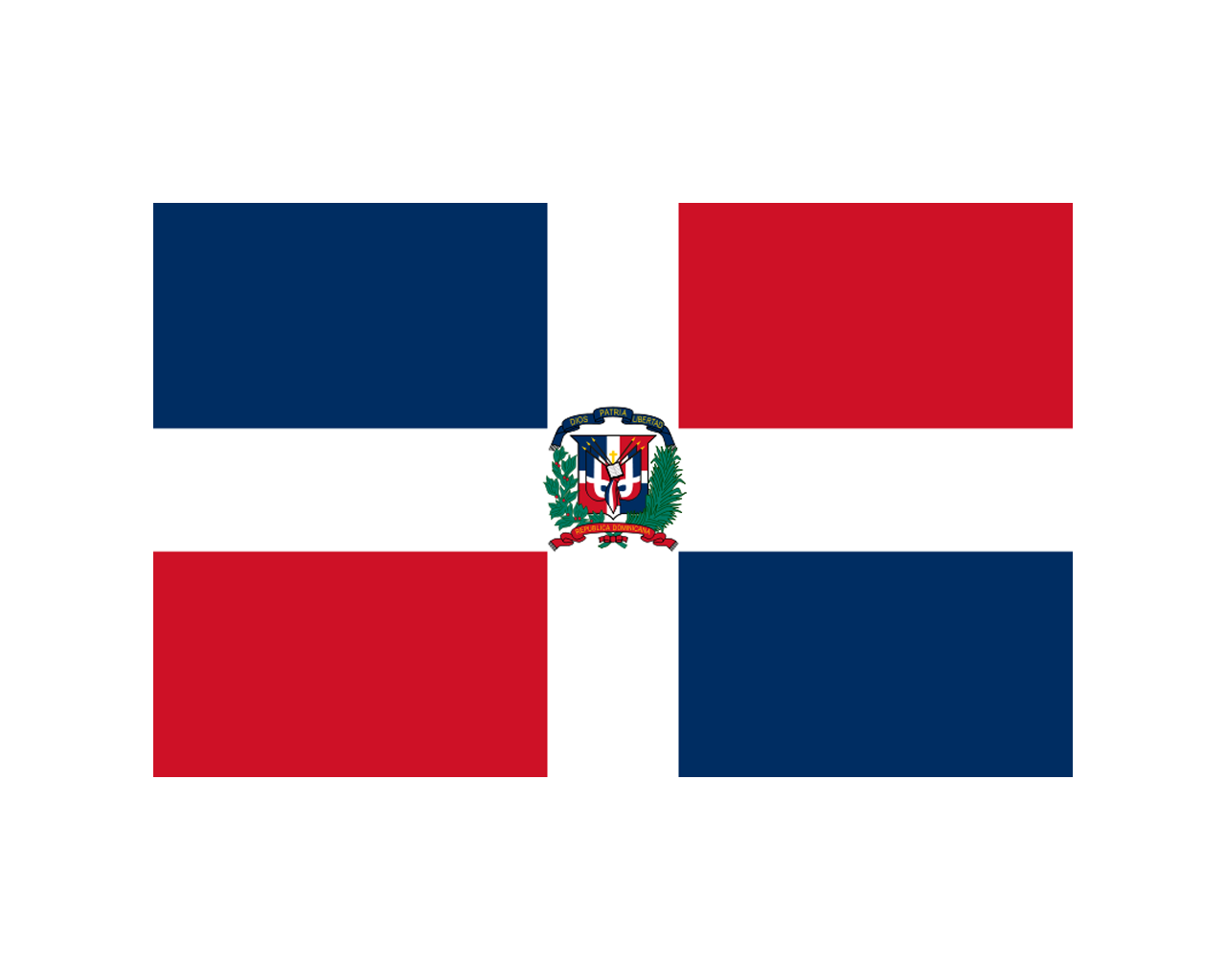 多米尼加共和國(The Dominican Republic),簡稱多米尼加,國名意為“星期天、休息日”,位置位于加勒比海伊斯帕尼奧拉島東部,首都圣多明各。多米尼加國旗呈長方形,長與寬之比為3∶2。白色寬條十字將旗面分成四個相等的橫長方形,左上方和右下方為藍色,右上方和左下方為紅色。白色十字交叉處繪有國徽圖案。紅色象征國家創(chuàng)建者為爭取自由、獨立而進行的火與血的艱苦斗爭,還象征奮斗者的鮮血;藍色象征自由;白色十字代表宗教信仰,也象征人民的奮斗和犧牲。中心圖案為盾徽。盾面由國旗顏色和圖案構(gòu)成。中間有一本圣經(jīng),其上方為黃色十字,圣經(jīng)和十字代表該國人民的宗教信仰,大多數(shù)人信奉天主教。圣經(jīng)兩旁懸掛著國旗,表明人民捍衛(wèi)國家主權(quán)的信心。盾徽兩側(cè)飾有月桂和棕櫚枝葉,上端的藍色綬帶上用西班牙文寫著“上帝、祖國、自由”,下端的紅色綬帶上用西班牙文寫著“多米尼加共和國”。
