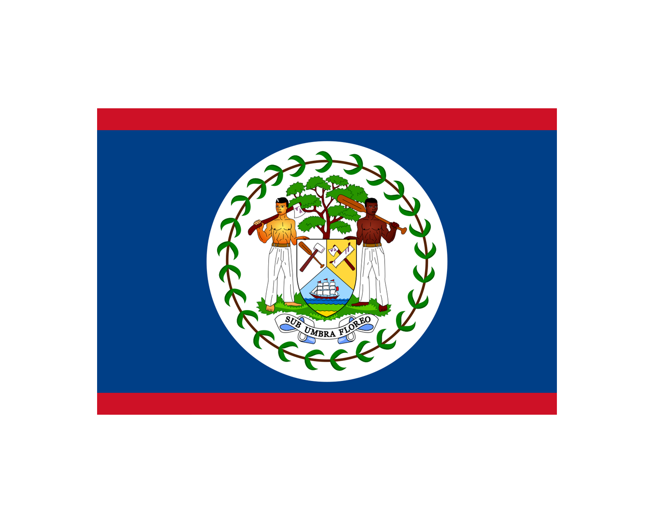 伯利茲(Belize),是中美洲唯一以英語為官方語言的國家。國名來自國內河流伯利茲河和最大城市伯利茲市,該市是伯利茲的舊首都,新首都為貝爾莫潘。伯利茲國旗啟用于1981年9月21日,國旗呈長方形,長與寬之比約為3:2。旗面主體為藍色,上下各有一紅色寬邊,正中為白色圓地,其中繪有50片綠葉環繞的國徽。藍色代表藍天和海洋,紅色象征勝利和陽光;50片綠葉構成的飾環表示紀念該國自1950年開始為爭取獨立而斗爭并最終取得勝利。