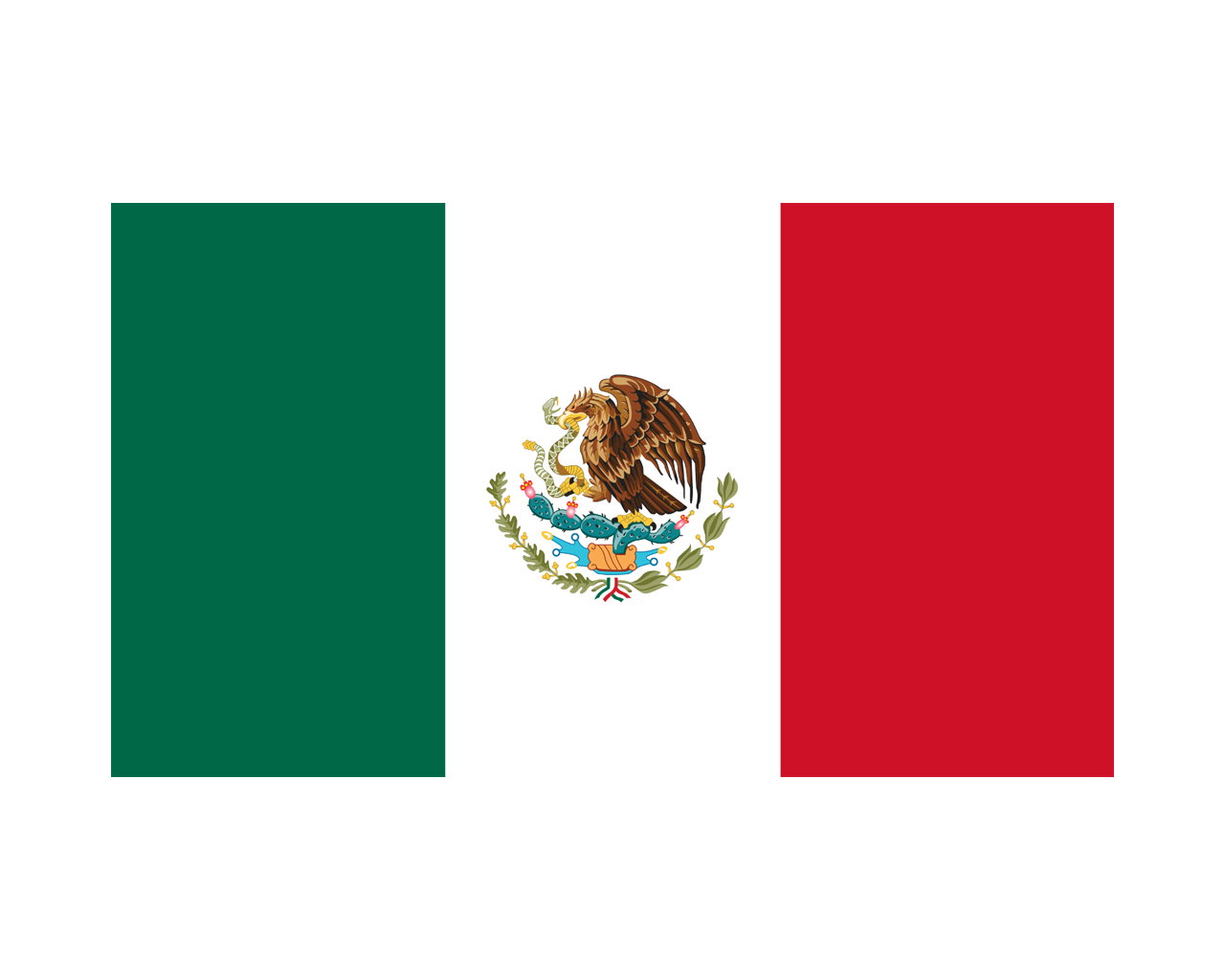 墨西哥合眾國(The United Mexican States),簡稱墨西哥,是北美洲的一個聯邦共和制國家,墨西哥為聯邦國家,包括三十二個州,其首都和最大城市墨西哥城亦為一州。墨西哥國旗呈長方形,長與寬之比為7:4。從左至右由綠、白、紅三個平行相等的豎長方形組成,白色部分中間繪有墨西哥國徽,圖案內容來自關于墨西哥歷史的傳說。綠色象征獨立和希望,白色象征和平與宗教信仰,紅色象征國家的統一。
