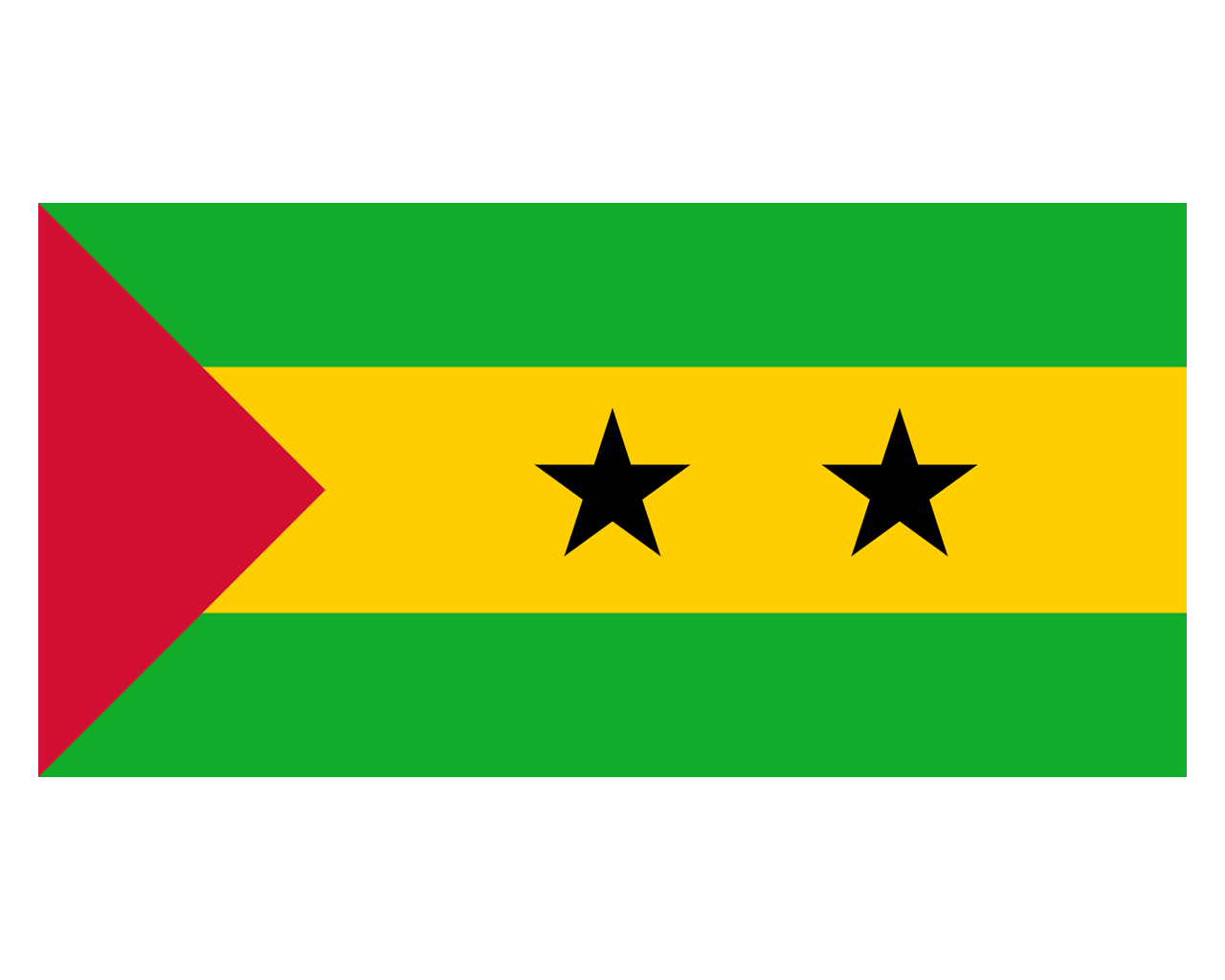 圣多美和普林西比民主共和國簡稱圣多美和普林西比。是位于非洲中西側(cè)幾內(nèi)亞灣東南部的島國,首都是圣多美。圣多美和普林西比國旗呈橫長方形,長與寬之比為2:1。由紅、綠、黃、黑四色構(gòu)成。靠旗桿一側(cè)為紅色等腰三角形,右側(cè)為三個平行寬條,中間為黃色,上下為綠色,黃色寬條中有兩顆黑色五角星。綠色象征農(nóng)業(yè),黃色象征可可豆和其他自然資源,紅色象征為獨立自由而斗爭戰(zhàn)士的鮮血,兩個五角星代表圣多美、普林西比兩個大島,黑色象征黑人。