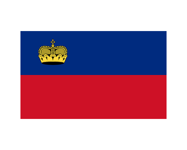 列支敦士登公國,簡稱“列支敦士登”,是歐洲中部的內陸袖珍國家,處于瑞士與奧地利兩國之間,為世界上僅有的兩個雙重內陸國之一。列支敦士登國旗呈長方形,長與寬之比為5:3。由上藍下紅兩個平行相等的橫長方形組成,左上角有一金色的王冠。列支敦士登為世襲君主立憲制,國旗上的藍、紅色來自公國親王旗的顏色,藍色象征藍天,紅色象征夜晚地面之火。旗面上的王冠是神圣羅馬帝國之王冠,這是1937年添加的,以便與海地國旗區別。王冠也是神圣羅馬帝國的標志,因歷史上列支敦士登曾為神圣羅馬帝國王侯的采邑。