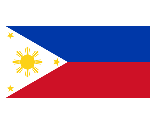 菲律賓共和國(Republic of the Philippines),簡稱菲律賓,位于西太平洋,是東南亞一個多民族群島國家。菲律賓的首都是大馬尼拉市,國歌是《菲律賓民族進行曲》,菲律賓國旗呈橫長方形,長與寬之比為2:1。靠旗桿一側為白色等邊三角形,中間是放射著八束光芒的黃色太陽,三顆黃色的五角星分別在三角形的三個角上。旗面右邊是紅藍兩色的直角梯形,兩色的上下位置可以調換。平時藍色在上,戰時紅色在上。太陽和光芒圖案象征自由;八道較長的光束代表最初起義爭取民族解放和獨立的八個省,其余光芒表示其他省。三顆五角星代表菲律賓的三大地區:呂宋、薩馬和棉蘭老島。藍色象征忠誠、正直、紅色象征勇氣,白色象征和平和純潔。