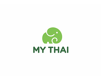 MYTHAI泰國快餐店標(biāo)志設(shè)計,使用動物“大象”作為餐飲店的識別圖形,整體以綠色作為主識別色。