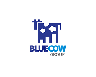 藍(lán)牛集團(tuán)標(biāo)志設(shè)計(jì)欣賞,該標(biāo)志巧妙的將奶牛與工廠的設(shè)計(jì)結(jié)合到了一起。
