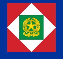 意大利總統旗為數個方形疊加,使用國旗綠白紅三色,中為國徽圖案,寓總統為國家代表,憲法守護者。