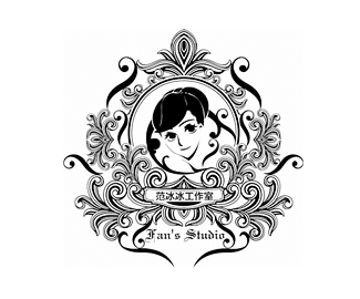 這是范冰冰的個人工作室logo設計,logo黑白色為主,中間有范冰冰個人的剪影頭像,外框是漂亮的歐式花紋組合設計。