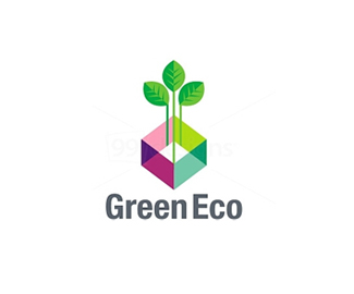 這是一家命名為綠色空間的裝飾公司圖標,標志使用三維空間和綠葉組成,標志整體形象,結構緊湊。