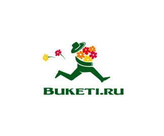 這是一家鮮花速遞公司的logo,logo使用了夸張的人物造型,手捧鮮花快速奔跑的人,可愛滑稽,形象生動。