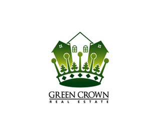 房地產項目標志使用皇冠和房子的造型,整體闡述綠色皇冠的含義,標志整體繁雜緊湊。