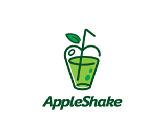 飲品店標志以果汁杯子和蘋果的造型組合,整體設(shè)計體現(xiàn)綠色健康的含義,標志生動有活力。