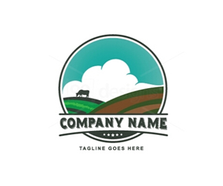 田園風格標志設計的唯美唯俏,標志的圖案以白云藍天下,綠地草叢中,風吹草低見牛羊,logo體現了一副美好的田園風光。