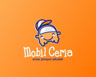 Mobil Ceria學校校車標志以卡通的“車”和“帽子組合成該標志的主識別圖形,以橙色和藍色作為主識別色。