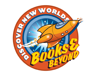 Books and Beyond書籍和超越俱樂部標志設計,徽章融入火箭元素,整體以橙色、黃色、藍色作為主識別色,該俱樂部主要在于發現或挖掘新的詞匯。