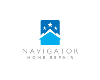 Navigator Home Repair三星級酒店標志設計,整體以藍色調為主色調,融入房子的形狀,應用于一家三星級酒店的標志設計。