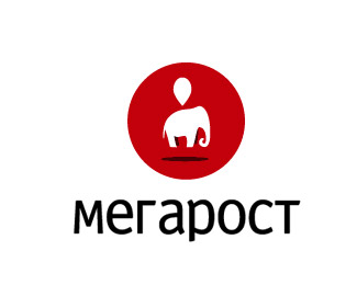 圓形的Logo設(shè)計,使用大象和氣球的剪影創(chuàng)意組合,以紅底作為主色調(diào)。