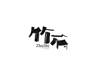 竹石書(shū)法字體設(shè)計(jì),應(yīng)用毛筆的筆觸呈現(xiàn)“竹”、“石”、“房”的意境。