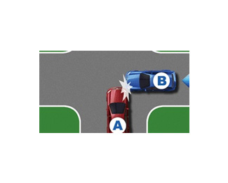 發生如上圖無信號燈路口未讓右側的車輛造成事故的責任認定時,A車全責,無信號燈路口未按提示標志讓行,要承擔全部責任。