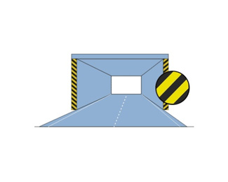 立面標記為黃黑相間的傾斜線條,傾角為45度,線寬及其間隔均為15cm,設置時應將向下傾斜的一邊朝向車行道。