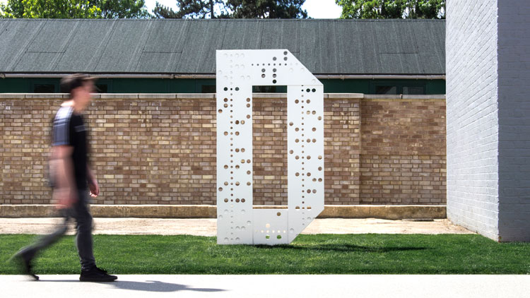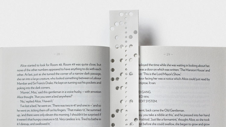 另一個微妙之處是展覽的三個主要部分攔截,情報和入侵已印在股票代號“D”的紙帶上在代碼中象征。點狀的紙帶圖案被用在新身份的所有觸點上,比如書簽等文具上,以及現在坐落在布萊切利公園(Bletchley Park)電傳打字機大樓外的一個新的永久性鋼鐵紀念碑上。