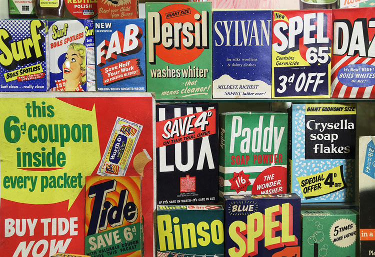 項(xiàng)目中使用museum’年代回憶會(huì)議包括原始的物品從museum’收集的1940年代,1950年代和1960年代和副本,一包有強(qiáng)烈氣味的救生圈等酚肥皂、一罐亨氏牛尾湯或一包洗衣粉沖浪。