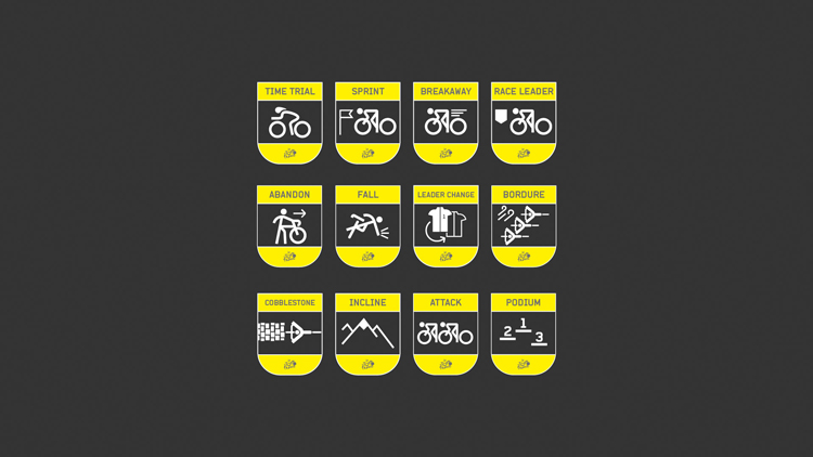 還設(shè)計(jì)了一套圖形,包括象形圖,以顯示不同的比賽情況,如勝利或放棄,并展示拓?fù)浜唾惖赖奶攸c(diǎn),如鵝卵石,攀登和短跑。