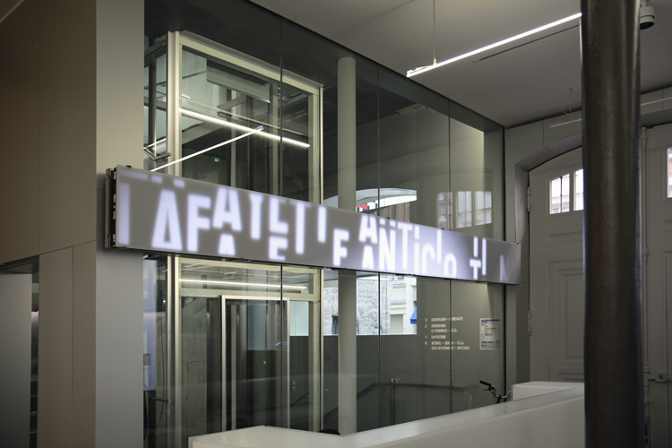 畫廊的中央大廳也以這個(gè)概念的數(shù)字版本為特色,畫廊名稱的投影不斷移動(dòng)和變化成不同的解釋。