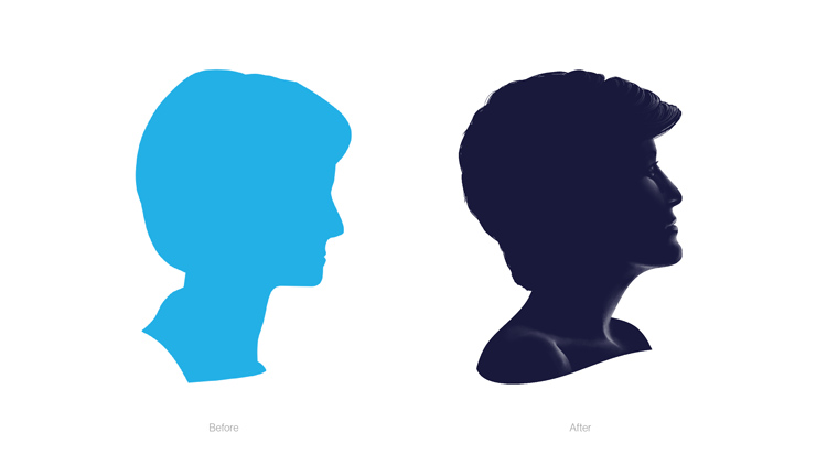 更新后的logo取代了之前的二維戴安娜頭像,取而代之的是深藍色的三維戴安娜頭像。肩膀和頭部略微向上傾斜。