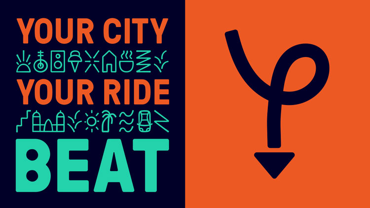 這些符號象征著英雄的“日常時刻”在Beat運營的城市,DesignStudio說,包括冰淇淋、太陽、棕櫚樹、揚聲器和雞尾酒。它們以深藍色、淺綠色和橙色出現。