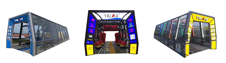 TS-11新型隧道連續(xù)式洗車機(jī)造型新穎、美觀,機(jī)器前臉摒棄其他廠家慣用的碳鋼方形門頭,沿用目前世界上發(fā)達(dá)國家流行的先進(jìn)現(xiàn)代拱門造型,采用有色亞克力材質(zhì)制造,圖示下方LED燈光,室內(nèi)和夜間使用更加醒目、美觀。