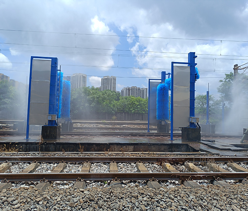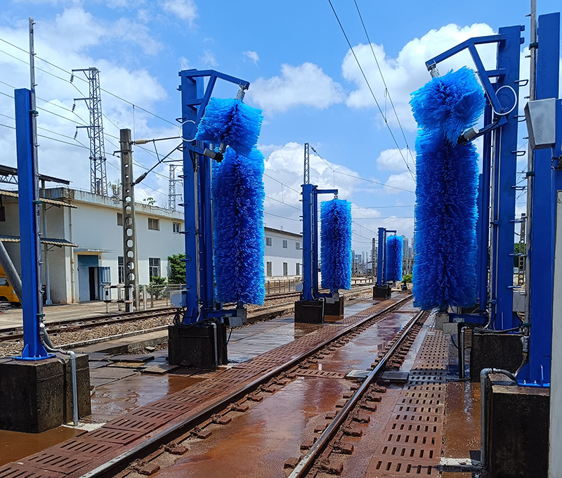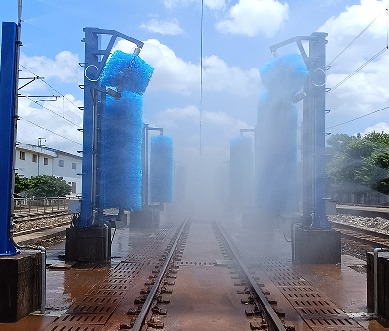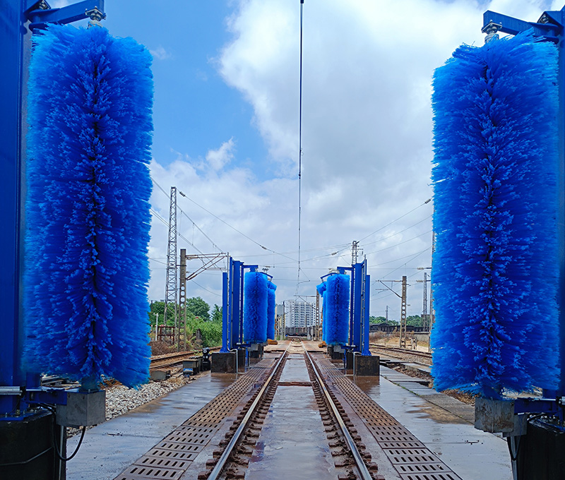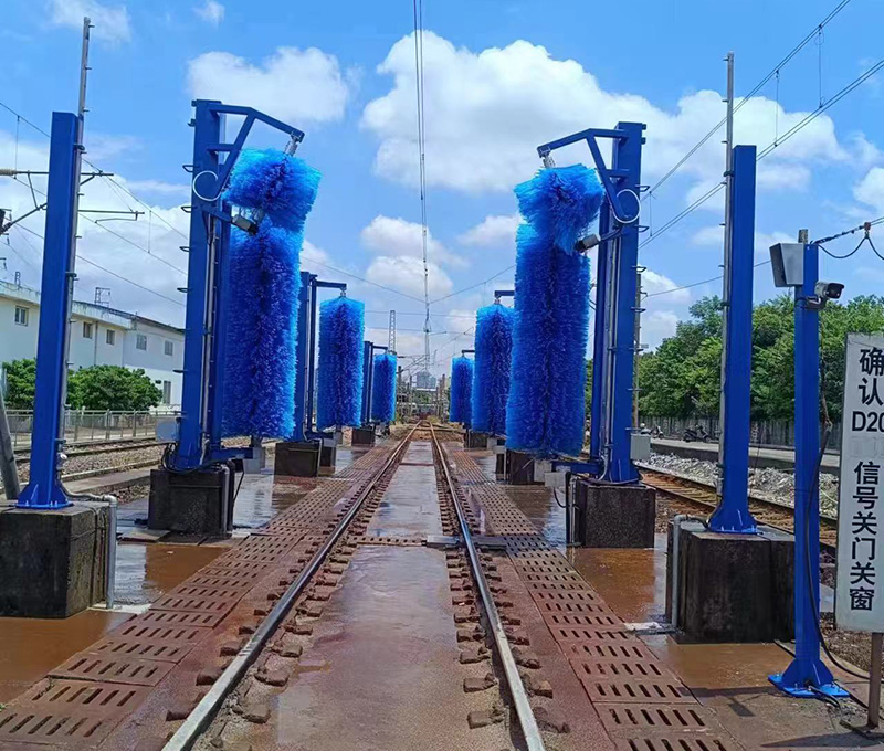 2、被清洗的污物主要是機車工作時累積和粘附在機車外皮表面的油泥、油垢、灰垢和動物粘結物等,必須加裝洗車液計量泵噴灑洗車液,要求機車兩側面、兩個側頂弧面清洗干凈,